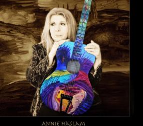 The terms ‘multi-talent’ or ‘polymath’ can be true for Annie Haslam in many ways. First of all, the albums she has made with the band Renaissance, her solo recordings and her shows represent her very high artistic approach. Moreover, as an extension of her music, Annie has become a painter. A very good and interesting painter. The term ‘intuitive’ describes well the unique style she has created. Apart from painting on canvas, she also paints musical instruments and her most recent stage dresses are her paintings printed on silk.