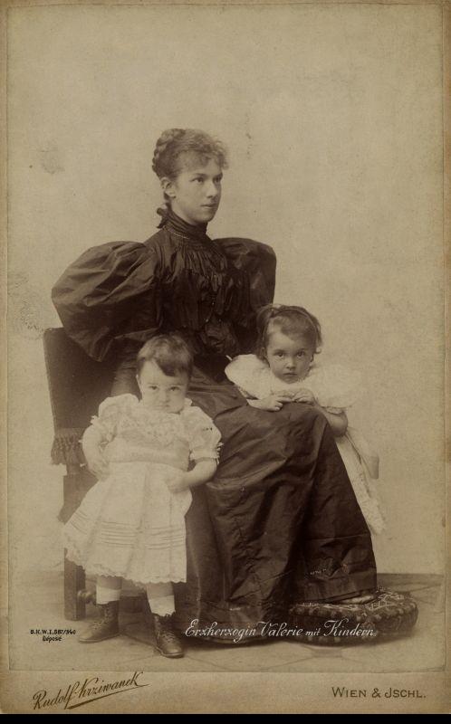 Mária Valéria főhercegnő két nagyobb gyermekével. Forrás: Osztrák Nemzeti Könyvtár (ÖNB) No.: Pf 144 : D (11)