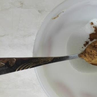 Hozzárakok 10 púpozott evőkanál tönkölybúzalisztet, 1 lapos teáskanál szódabikarbónát, gyömbért, szegfűborsot, 1 púpos teáskanál fahéjat. Összekeverem, és sütőpapírral kibélelt tepsibe öntöm.