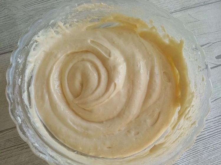 6. Leveszem a gőzről és hozzáadom a vajat és a tejszínt, robotgéppel habosra keverem.