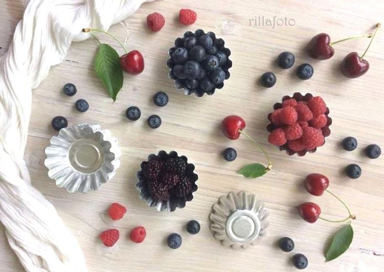 gyümölcsök: málna, cseresznye, szeder, áfonya