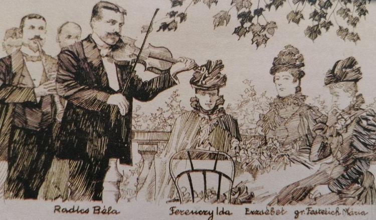 Mühlbeck Károly: Néhai Erzsébet királyné magyar cigányzenét hallgat Radics Bélától.