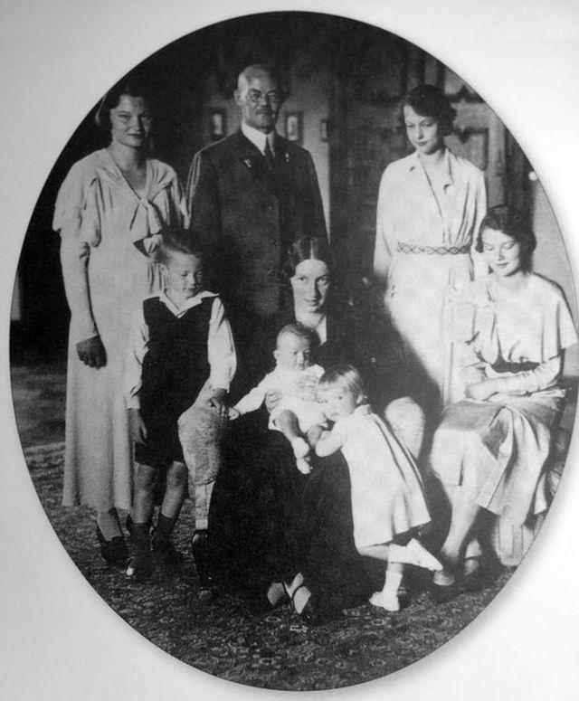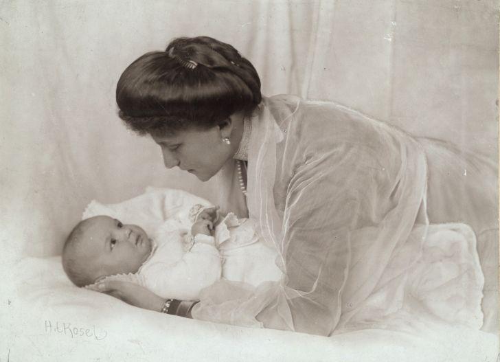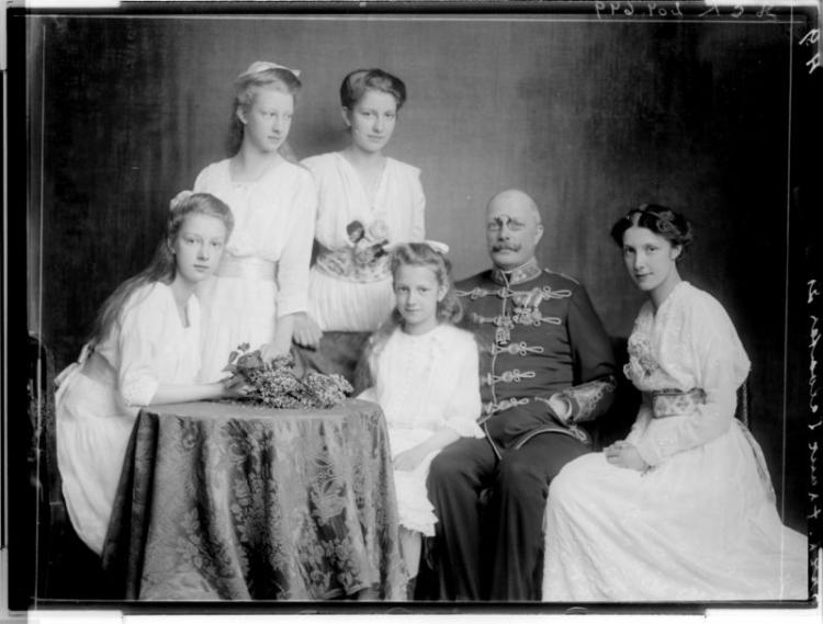 A képen középen ül Gertrúd főhercegnő (Gertrud von Österreich-Toskana grófné). Mögötte Ella (Gertrúd nővére) és Georg gyermekei (Erzsébet királyné Ellától származó négy dédunokája), ölében és szorosan hozzásimulva Zsófia és József (a királyné Gertrúdtól származó két dédunokája). (Forrás: Pinterest)