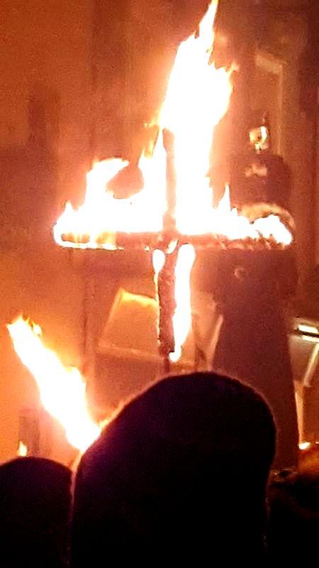 Hőhullám csap az arcunkba megint. Égő keresztek jönnek. Tizenhét. Mögöttük szótlan püspöki kar, és egy feketeruhás spanyol inkvizítor. „Burn them!” „Égjenek el!” - hangzik mindenhonnan tombolva, feltörve valahonnan az évszázadok mélyéről. Itt halt máglyahalált tizenhét protestáns városi polgár 1556-ban, Véres Mária királynő uralkodásának második évében, éppen itt. Karnyújtásnyira a lépcsőtől csak, ahol állunk. „Burn them!” „Égjenek el!” – tomboljuk, doboljuk kézzel-lábbal, és nem egészen egyértelmű, kire is gondolunk, a mártírokat jelentő keresztekre, vagy szótlan gyilkosaikra, az őket kiskérő püspökökre. Mindre együtt talán. Mi vagyunk a egyház ellen lázadó, legyőzötten átkozódó protestáns tömeg, és mi vagyunk a győztesek kegyetlenségével igazságot osztó katolikusok is. „Égjenek el!” - üvöltjük. Lángolnak a keresztek, és petárdák repülnek a szótlan püspökök felé.