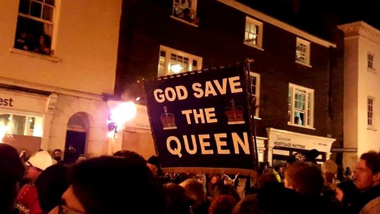 Guy Fawkes érkezik végre, a yorki katolikus, aki puskaporos hordókkal repítette volna levegőbe a protestáns Westminstert 1605 november 5-én. Megnyomorított, gúzsba kötött szalmafigura, szénásszekéren. És mi most kiabáljuk csak igazán teli torokból hogy „Égjen el! Égjen!” Aztán a hangzavarba hirtelen belecsendül a himnusz első akkordja. Megáll a tombolás, mintha karmester intett volna közbe. Még a legfelvilágosultabb dinasztia-ellenzők is álmodó kábulatban éneklik, hogy „God save our gracious Queen!”, még én is, akinek nem szülőföldje ez az ország, nem himnusza ez a himnusz, és nem királynője ez a királynő. Azon érem magam, hogy teli torokból éneklek meghatódva: „Isten, óvd a Királynőt!”