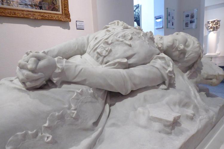 A képen látható fekvő, imádkozó hercegnő szobra, alatta elszenesedett gerendák és egy függönydarab látható, mindez szintén megformázva. Az emlékmű Louis-Ernest Barrias szobrász munkája. A szobrot túlságosan is drámainak tartották, ezért 1910-ben a kápolna alagsorában helyezték el. Több, mint száz évnek kellett eltelnie, mire 2014-ben az emlékmű (szobor) a Musée d'Art et d'Histoire de Dreux (egy francia múzeum) állandó kiállításán helyzeték el. A jótékonysági bazár helyén 1900-ban a Chapelle Notre-Dame de Consolation kápolnát építették. (A kép a szoborról a Wikipediáról származik.)