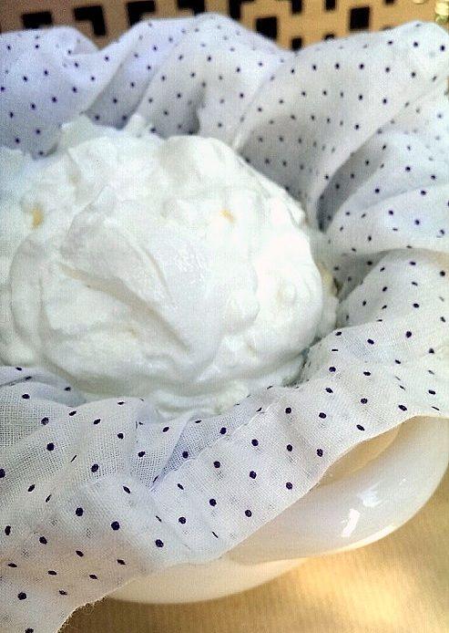 3. Egy mélyebb tál fölé teszem, a konyharuhát jól megtekergetem a tejfölgombóc fölött, és egy éjszakán át hagyom lecsöpögni.