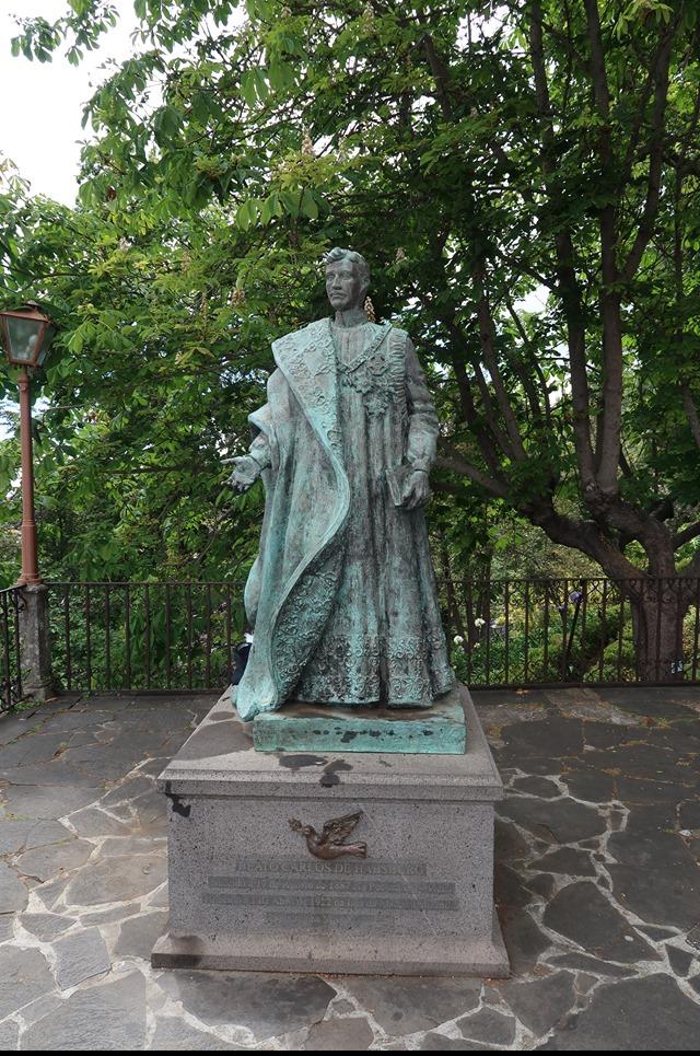 Monte temploma Funchal, Madeira fővárosa felett, egy hegyen található. Túrázni is lehet, de mivel szokásom beöltözve látogatni a Habsburgok emlékhelyeit, így bérelt autóval mentünk fel, ameddig lehetett. Nagyon szép a templom, és Károly sírhelye, magyar koszorúk, zászlók emlékeztetnek bennünket magyar királyunkra.