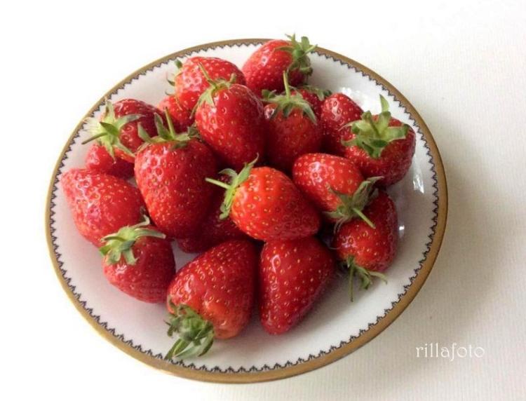 3. Az eperből kiválasztom a legszebbeket, poharanként 1-2 szemet. A többit villával picit megtöröm, 1 kiskanál porcukorral, fél citrom levével, az apróra vágott mentával ízesítem.