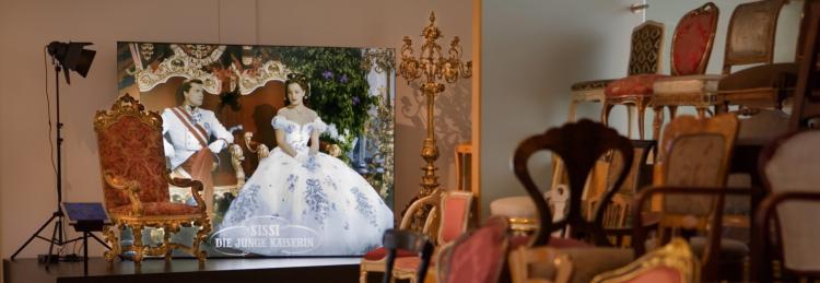 Sissi-film kiállítás (A trilógia második részének báli jelenetében látható császári szék) - A kép módosított (vágott). Bútor Múzeum, Bécs © BMobV und SKB./Lois Lammerhuber