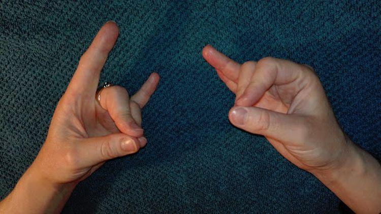- Kéztartás Bronchitises köhögésre: Ez egy kicsit nehezebb, nagyobb figyelmet igényel az ujjak tartása a jelölt pontokon. Ajánlott az ujjak megfelelő megtartásához megtámasztatni a testünk mellett: Mindkét kézzel ugyanúgy végezzük a gyakorlatot a kép segítségével: 5. ujjunkat helyezzük az 1. ujj tövéhez, 4. ujjunkat az 1. ujj első ízületéhez tegyük, 3. ujjunkat érintsük össze az 1. ujjal és a 2. ujjat lazán tartsuk nyújtva.