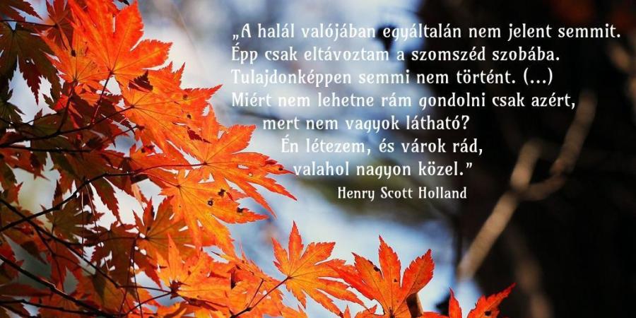Halottak napján a néma temetők gyertyák gyújtotta esti fényében csak a sárga falevelek zizzennek, amint földet érnek. Mintha az utat mutatnák, merre menjek, hol találhatom Őt meg...