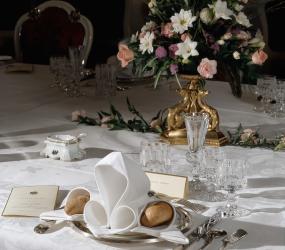 Az egykori császári ebédlőasztalt a hivatalos alkalmakra megterített egykori állapotában tekinthetjük meg a hagyományosan hajtogatott szalvétákkal, amelyek készítésének technikáját mindig csak ketten ismerték. Írásban nem rögzítették, így módszer szájhagyomány útján öröklődött.