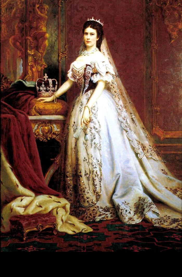 Székely Bertalan: Erzsébet királyné (forrás) - Sisi a koronázási díszruhájában látható a képen