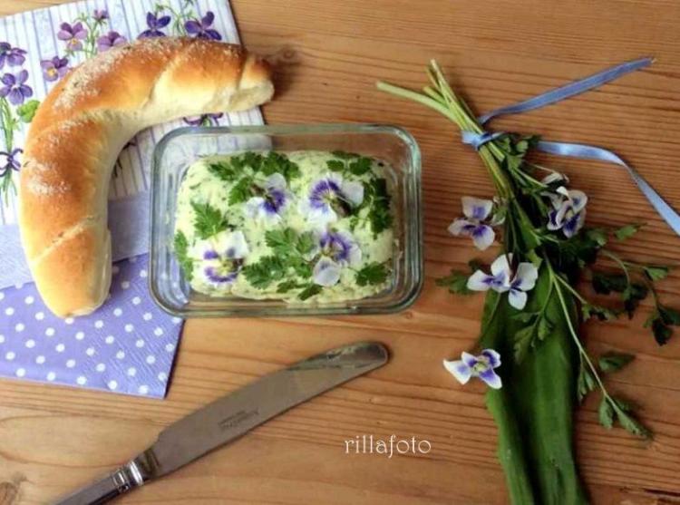 Mai ajánlatom elkészítése gyors és egyszerű, a végeredmény mégis különleges, finom és elegáns: tavaszi reggelik, uzsonnák csinos dísze, az ibolyás fűszervaj.