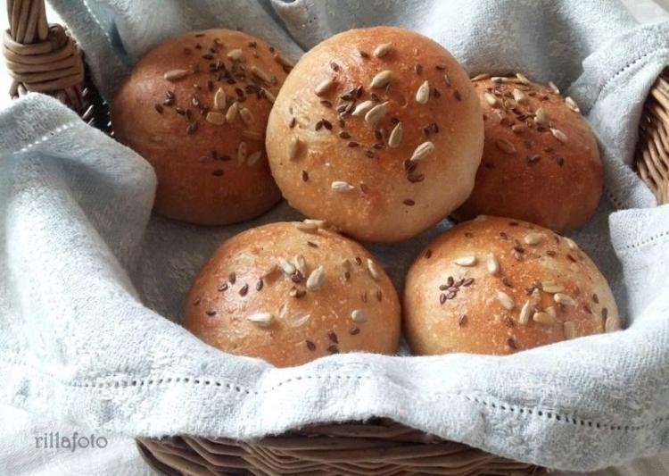 8. 25 percig ruhával letakarva kel, a sütőt bekapcsolom 180 fokra, majd a zsemléket pengével bevágom, bespriccelem vízzel, megszórom a magokkal, még 5 perc pihenő, és jöhet a sütés: