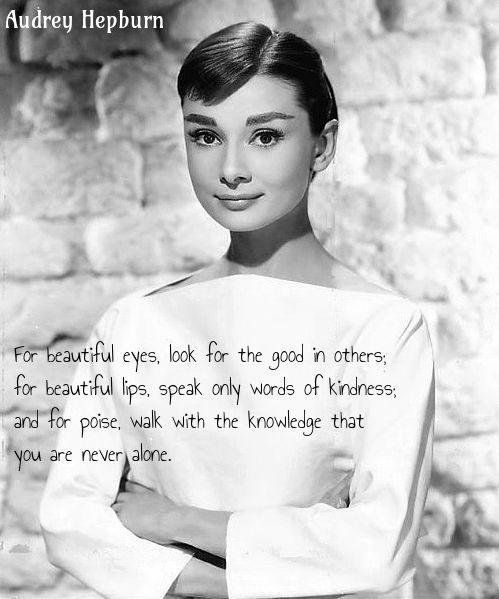 "For beautiful eyes, look for the good in others; for beautiful lips, speak only words of kindness; and for poise, walk with the knowledge that you are never alone."