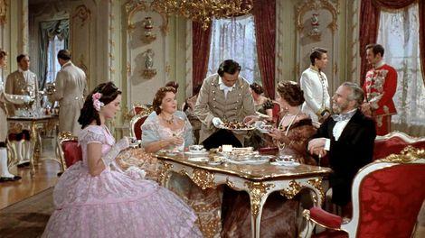 Az alábbi eseménysorhoz hasonló jelenet a Sissiben a báli vacsorán játszódik le, de ott nem a nevelőnő, hanem Károly Lajos ül Erzsébet mellett, akit nem az asztal végére vagy távolabb, hanem a főasztalhoz ültetnek.
