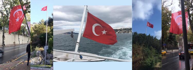 A lassanként ereszkedő gép alatt tenger. Fehérlő habok, és rengeteg, rengeteg vízi jármű, kisebbek, nagyobbak, mindenfélék. A szárazföldön temérdek sok épület. Azután a töméntelen piros szúrt szemet. Ameddig csak a szem ellátott, mindenfelé félholdas-csillagos zászlók lobogtak, büszkén, méltóságteljesen, épp azzal a megállíthatatlan lendülettel, ami – mint kiderült -, az egész országra, az egész népre olyannyira jellemző. Odakint azt vallják, egy török a zászlóért a vérét adja, bármikor.