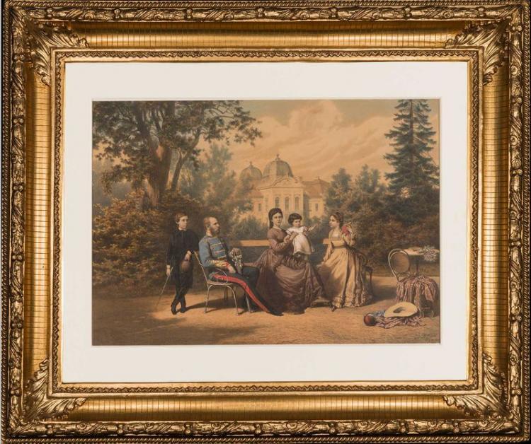 Royal Couple with their children (Crown Prince Rudolf, Princess Marie Valerie - on Elisabeth's lap, Princess Gisele) in the park of the Royal Palace of Gödöllő © Schloß Schönbrunn Kultur- und Betriebsges.m.b.H. - Exhibition (below)