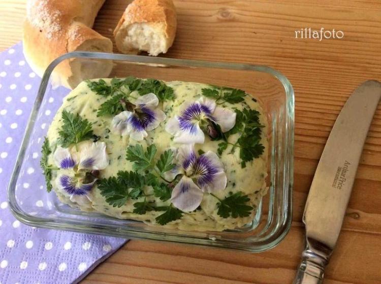 Mai ajánlatom elkészítése gyors és egyszerű, a végeredmény mégis különleges, finom és elegáns: tavaszi reggelik, uzsonnák csinos dísze, az ibolyás fűszervaj.