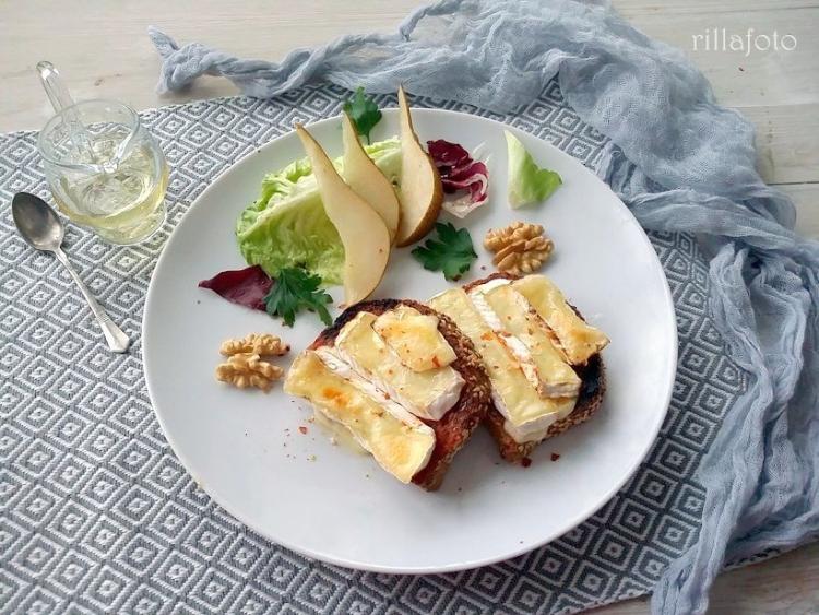 4. Úgynevezett nyitott szendvicssütőben, vagy grillerben sütöm, míg a sajt megolvad és a teteje megpirul. (Több szeletet a rendes sütőben is gyorsan megsüthetünk.)