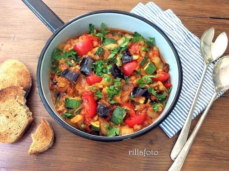 ratatouille: olívaolaj, padlizsán, cukkini, fokhagyma és petrezselyem