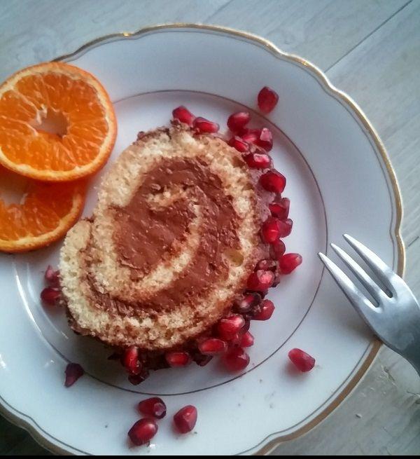 8. A kihűlt piskótát kitekerem, megkenem a lekvárral, majd a krém 2/3 részével, és újra feltekerem.