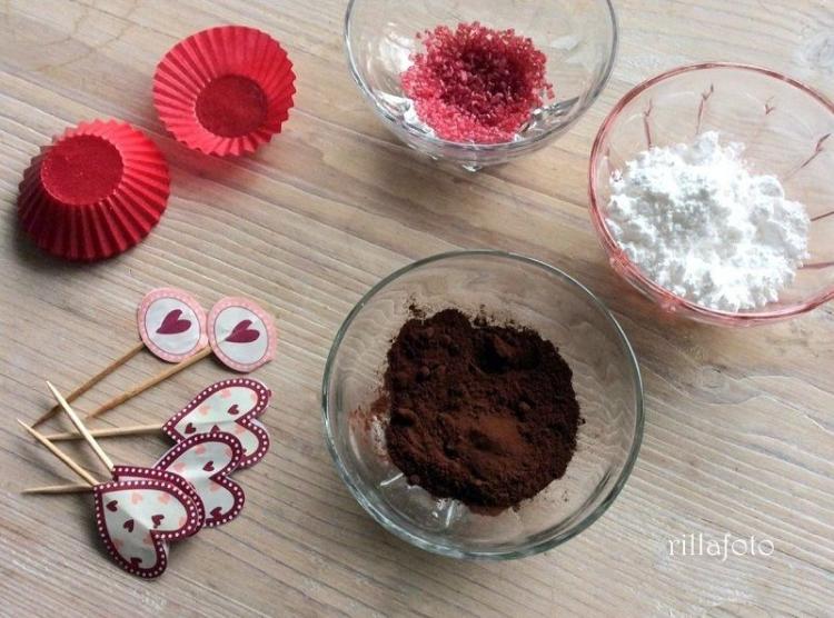 6. Előkészítem a dekorációs anyagokat: külön kistányérokba porcukrot, kakaóport és színes szórócukrot teszek.