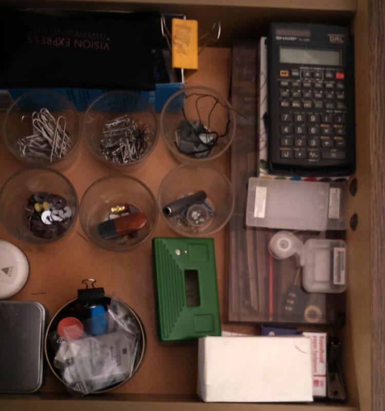 Talán a leghihetetlenebb: akár kimosott joghurtos pohár, túrós tégely, tejszínhabspray műanyag teteje is nagyszerű mütyür tároló. Egyes joghurtos poharakat – a közepes, lefelé szűkülő, tetővel ellátott fazont és a túrós tégelyt szeretem a legjobban. Hobbi felszerelés tárolására szoktam használni, mert használaton kívül egymásba rakva kisebb helyet foglalnak, ha eltörik, elreped, feleslegessé válik, vagy már nem férek el tőlük, akkor pedig még mindig mehet a szelektív gyűjtőbe. Sokan vesznek a hobbi kellékeknek is kis dobozkákat, de a gyakran változó mennyiségű kellékek: ékszer kellékek, gyöngyök, sógyurma számára pont megteszi. Nem szépek, de egy nagyobb dobozban, fiókban úgysem látszik, és nagyon praktikus szelektáló edények apró dolgok számára. Irodai bigyóknak is megfelel: gemkapocs, tűzőkapocs, rajzszög, radírdarabok és más apró kellékek számára. Ha idegenkedsz a műanyagtól, akkor használj papírt, fémet, üveget vagy textilt. Ha ezek a műanyagtárolók feladják, én is fokozatosan áttérek másra. Az irodai fiókomban üveg mécsestartó poharak töltik be a bigyótároló szerepét évek óta. A magukra maradt kávéscsészék és apró csetreszek is jók erre a célra. A használaton kívüli, de szükséges kábelekre húzhatsz akár papírgurigát is.