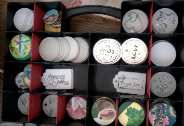 A legjobb módszer arra, hogy tudd, mi hol van: címkézd fel a tárolókat. Pár éve elkezdtem beszerezni formalyukasztókat – mindenféle speciális formát is – és pár hatalmas lukasztót is vettem, amivel szép formájú címkéket is lehet kivágni. Mivel nagyjából 300g/ív vastagságú kartonokat még viszonylag jól visz, számos háztartási karton „hulladékból” is nagyszerű címkéket és szép formákat tudok kivágni. Müzlis dobozok és egyéb dobozok színes felületeit kihasználva gyakran ajándékkísérő kártyákat és dobozokat is készítek. Rendkívül dekoratív és még hasznos is, mert tudom, mi hol van. Mivel gyakorlatilag majdnem ingyen van – bár a bennük lévő termékért fizetni kell, a legjobb esetben is a szelektív hulladékgyűjtőben végeznék a legtöbb háztartásban. A lukasztók segítségével viszont remek dolgokat készítek belőlük. Akár képeslapokat, doboz díszeket is.